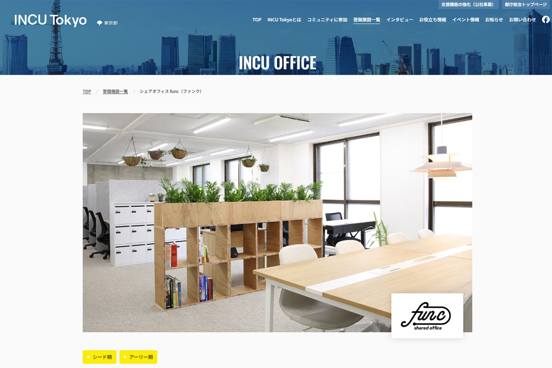 このたび、func(ファンク)は、東京都が中心となって設置したインキュベーション・コミュニティ「INCU Tokyo」に登録されました。