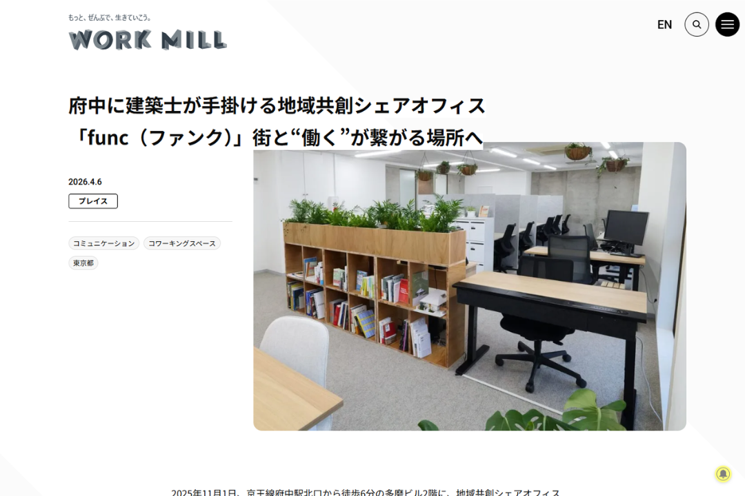 『府中に建築士が手掛ける地域共創シェアオフィス「func(ファンク)」街と”働く”が繋がる場所へ』