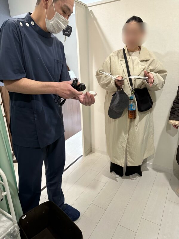 りた鍼灸院で実際の鍼や電気灸を見せていただきつつ鍼灸のお話を聞きました。